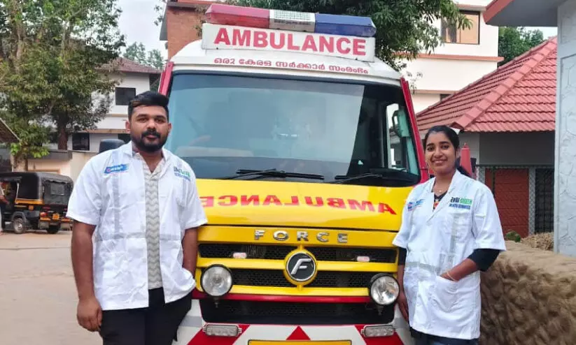 ആംബുലൻസ് പൈലറ്റ് എൻ.ആർ. കാർത്തിക്, എമർജൻസി മെഡിക്കൽ ടെക്നീഷ്യൻ നീനു ടോമി എന്നിവർ