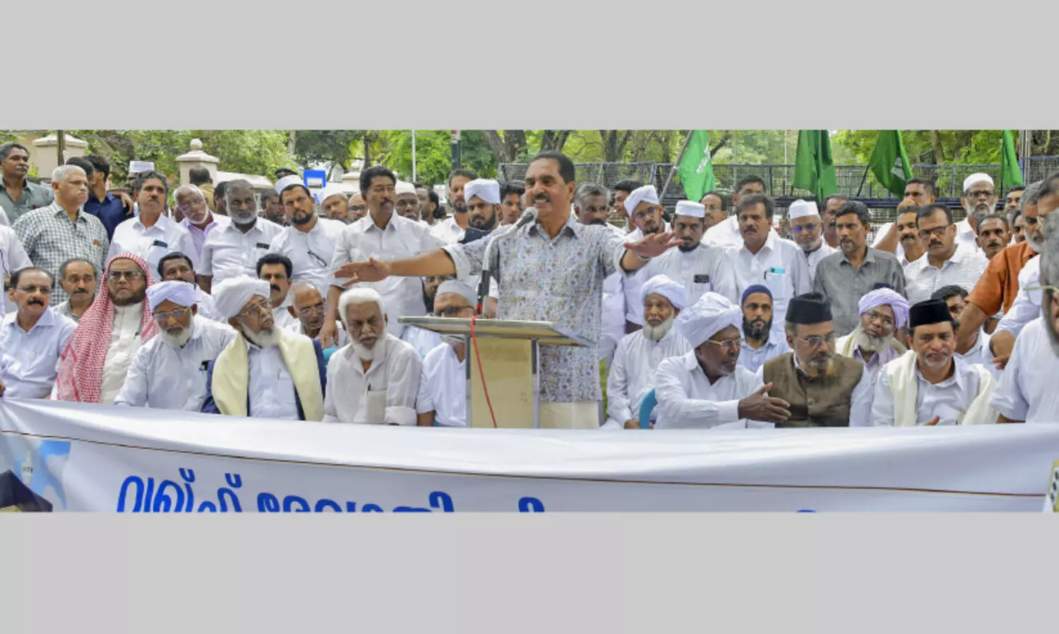 വഖഫ് ഭേദഗതി നിയമം പിൻവലിക്കണമെന്നാവശ്യപ്പെട്ട് കേരള മുസ്ലിം ജമാഅത്ത് ഫെഡറേഷൻ നടത്തിയ രാജ്ഭവൻ മാർച്ച് എൻ.കെ. പ്രേമചന്ദ്രൻ എം.പി ഉദ്ഘാടനം ചെയ്യുന്നു