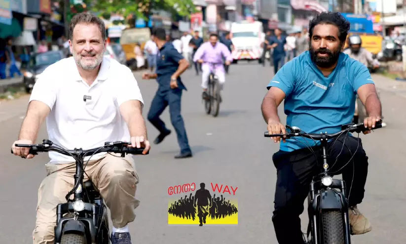 കോട്ടയം: പാമ്പാടിയിലെ പൊതുയോഗ സ്ഥലത്ത് രാഹുൽ ഗാന്ധിയെ കാണാൻ വൻജനാവലി എത്തിയിരുന്നു. പുതുപ്പള്ളിക്കാരുടെ പ്രിയ നേതാവ് ഉമ്മൻചാണ്ടിയെ അനുസ്മരിച്ചായിരുന്നു രാഹുൽ സംസാരിച്ചു തുടങ്ങിയത്. അര മണിക്കൂർ മാത്രമുള്ള പ്രസംഗം കഴിഞ്ഞ് അടുത്ത പ്രചാരണ സ്ഥലമായ കഞ്ഞിക്കുഴിയിലേക്ക് പോകുംമുമ്പ് എല്ലാവരെയും അമ്പരപ്പിച്ച് രാഹുൽ സൈക്കിളിൽ കയറി. കൂടെ പുതുപ്പള്ളി മണ്ഡലം സ്ഥാനാർഥി ചാണ്ടി ഉമ്മനും.
