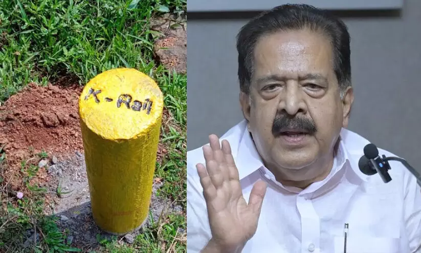 ‘നാട്ടിൽ മുഴുവൻ മഞ്ഞക്കുറ്റികൾ ഇട്ടിരിക്കുകയാണ്. ജനങ്ങൾക്ക് ഭൂമി വിൽക്കാൻ പറ്റുന്നില്ല, അവിടെ ക്രയവിക്രയങ്ങൾ പറ്റുന്നില്ല. ശ്രീധരനാണെങ്കിലും പിണറായി ആണെങ്കിലും മഞ്ഞക്കുറ്റി ഊരി ജനങ്ങളെ രക്ഷിക്കണം. ഏതായാലും ഈ സർക്കാറിന്റെ കാലത്ത് ഒരു റെയിലും വരാൻ പോകുന്നില്ല. തെരഞ്ഞെടുപ്പാകുമ്പോൾ ഇങ്ങനെയുള്ള പല അഭ്യാസങ്ങളും കാണേണ്ടിവരും. ഇതൊന്നും നടക്കാൻ പോകുന്നില്ല...’ -ചെന്നിത്തല പറഞ്ഞു.