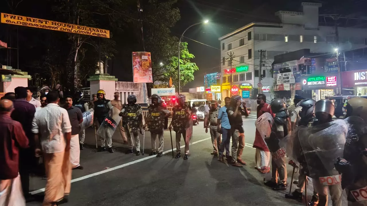 സംഭവം അറിഞ്ഞെത്തിയ സംഘ്പരിവാർ പ്രവർത്തകർ മുഖ്യമന്ത്രി കടന്നുപോയശേഷം എം.സി റോഡിൽ വാഹന ഗതാഗതം തടസ്സപ്പെടുത്തി. പലതവണ ചർച്ച നടത്തിയെങ്കിലും പ്രതിഷേധക്കാർ പിന്മാറിയില്ല. പൊലീസിനെതിരെ മുദ്രാവാക്യം വിളിച്ച് സംഘ്പരിവാർ പ്രവർത്തകർ സ്ഥലത്ത് തമ്പടിച്ചു.