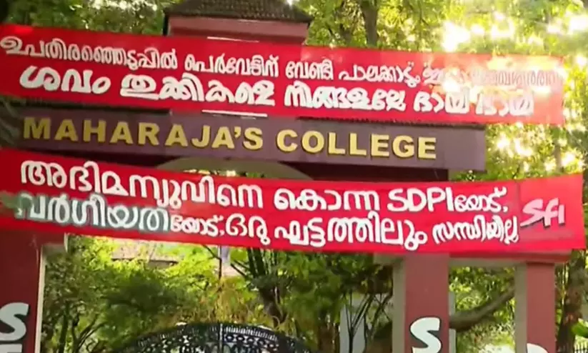 കൊച്ചി: സി.പി.എം-എസ്.ഡി.പി.ഐ ‘ഡീലിനെ’ ചൊല്ലി ആരോപണ പ്രത്യാരോപണങ്ങൾ ചൂടുപിടിക്കുന്നതിനിടെ, പരോക്ഷ വിമർശനവുമായി എറണാകുളം മഹാരാജാസ് കോളജിനു മുന്നില് എസ്.എഫ്.ഐയുടെ ബാനര്. അഭിമന്യുവിനെ കൊന്ന എസ്.ഡി.പി.ഐയോട്, വര്ഗീയതയോട് ഒരു ഘട്ടത്തിലും സന്ധിയില്ല എന്നാണ് ബാനറിലുള്ളത്. ശനിയാഴ്ച രാത്രിയാണ് ബാനര് ഉയര്ത്തിയത്.