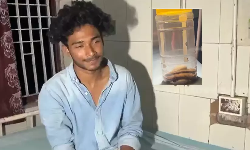തിരൂർ: കടിച്ച പാമ്പിനെ പിടിച്ച് കുപ്പിയിലാക്കി ആശുപത്രിയിലേക്ക് കൊണ്ടുവന്ന് യുവാവ്. മലപ്പുറം ആനപ്പടി സ്വദേശിയായ നാസിമാണ് തന്നെ കടിച്ച നീർക്കോലിയുമായി ആശുപത്രിയിൽ എത്തിയത്.