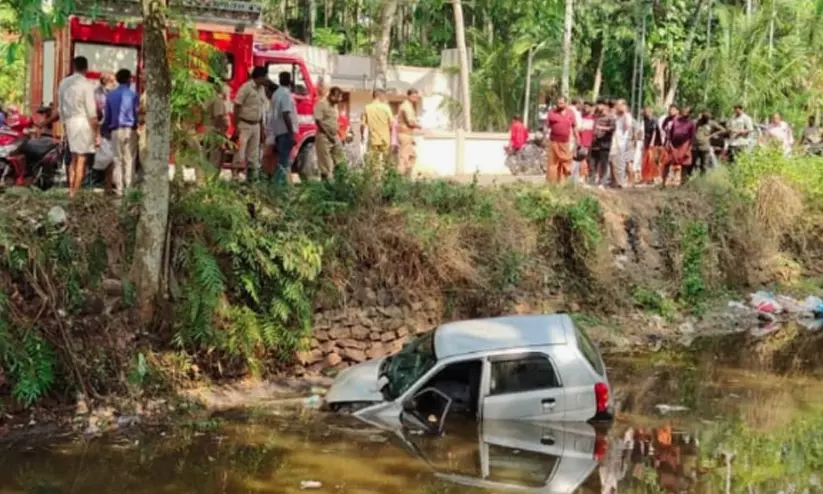 ഹരിപ്പാട്: നിയന്ത്രണംവിട്ട കാർ തോട്ടിലേക്ക് മറിഞ്ഞ് അപകടം. നാട്ടുകാരുടെയും ബൈക്ക് യാത്രികരുടെയും സമയോചിതമായ ഇടപെടൽ മൂലം കാറിലുണ്ടായിരുന്ന വയോധികയും മകനും അത്ഭുതകരമായി രക്ഷപ്പെട്ടു. ഡാണാപ്പടി-കാർത്തികപ്പള്ളി റോഡിൽ അനന്തപുരം തെക്ക് ഹോട്ടൽ ബേബി ജങ്ഷനിൽ ഇന്ന് വൈകീട്ട് മൂന്നിനായിരുന്നു അപകടം.