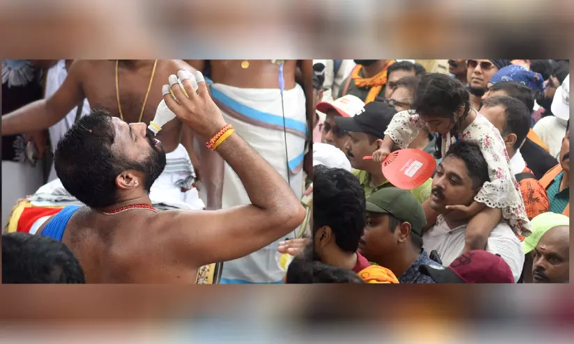 തേക്കിൻകാട് മൈതാനത്ത് നടന്ന കുടമാറ്റത്തിനിടെ അസഹ്യമായ ചൂടിന്റെ നേർക്കാഴ്ചകൾ
