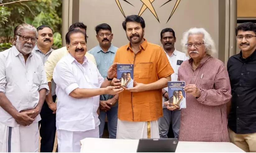 തിരുവനന്തപുരം: കോൺഗ്രസ് നേതാവ് രമേശ് ചെന്നിത്തലയുടെ ഏറ്റവും പുതിയ പുസ്തകമായ `മൈ ജേർണി ത്രൂ ഗാന്ധി വില്ലേജെസിന്റെ' പ്രകാശനം നടന് മമ്മൂട്ടിയും സംവിധായകനും തിരക്കഥാകൃത്തുമായ അടൂർ ഗോപാലകൃഷ്ണനും ചേർന്ന് നിർവ്വഹിച്ചു.
