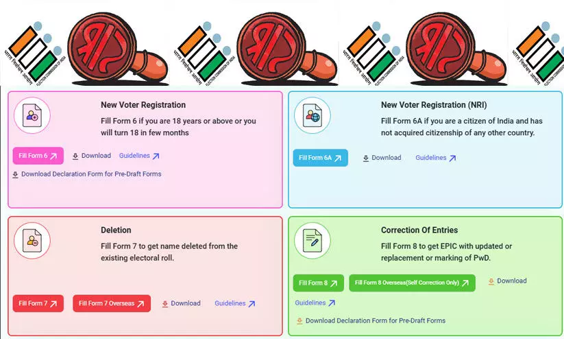 ഫോം 8: വിലാസം മാറ്റാൻ, വീട്ടു നമ്പർ തിരുത്തൽ ഉൾപ്പെടെ ആവശ്യങ്ങൾക്ക് ഫോം എട്ട് പൂരിപ്പിച്ച് നൽകാവുന്നതാണ്.