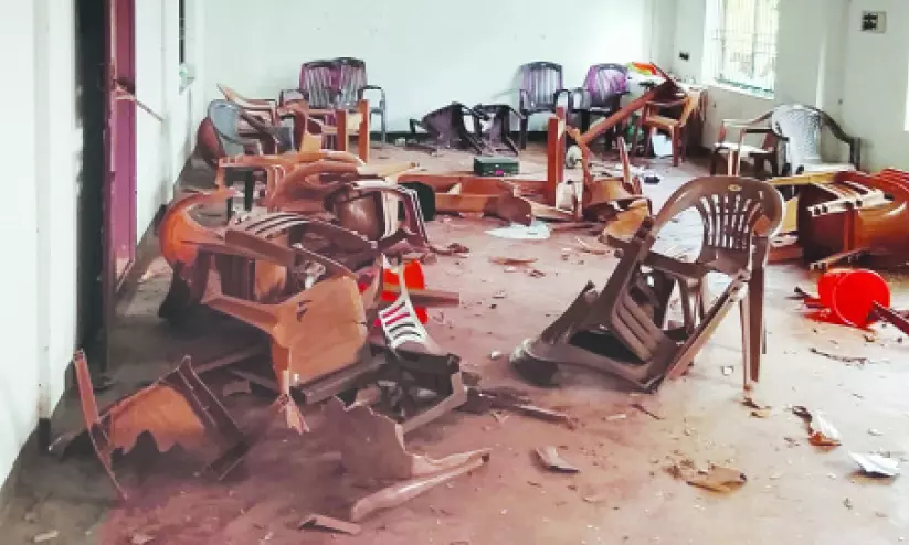 മയ്യിലിൽ കോൺഗ്രസ് ഓഫിസിനകത്തെ ഫർണിച്ചറുകൾ തകർത്തനിലയിൽ
