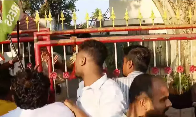 തിരുവനന്തപുരം: ആലപ്പുഴ മെഡിക്കൽ കോളജിൽ അഞ്ചുവർഷം മുമ്പ് ശസ്ത്രക്രിയക്ക് വിധേയായ ഉഷ ജോസഫിന്റെ വയറ്റിൽ ഉപകരണം കണ്ടെത്തിയ സംഭവത്തിൽ പ്രതിഷേധവുമായി യൂത്ത് കോൺഗ്രസ്. ആരോഗ്യ മന്ത്രി വീണ ജോർജിന്റെ ഔദ്യോഗിക വസതിയിൽ കടന്നുകയറിയ യൂത്ത് കോൺഗ്രസ് പ്രവർത്തകർ റീത്ത് വെച്ച് പ്രതിഷേധിച്ചു. ഗേറ്റ് തള്ളി തുറന്നെത്തിയ പ്രതിഷേധക്കാർ വീടിന്റെ മുൻവശത്തെ വാതിലിലാണ് റീത്ത് വെച്ചത്.
