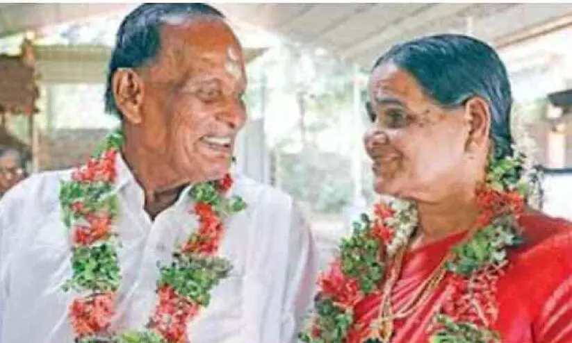 എടക്കാട്: നടാൽ മഹാവിഷ്ണു ക്ഷേത്രമുറ്റത്ത് ഞായറാഴ്ച രാവിലെ നടന്നത് അപൂർവ വിവാഹം. 85കാരനായ വടക്കേച്ചാലിൽ ചന്ദ്രനും 65കാരിയായ ആഡൂർ മേപ്പാട് രമയും വരണമാല്യം ചാർത്തി പുതുജീവിതത്തിന് തുടക്കം കുറിക്കുകയായിരുന്നു. ചന്ദ്രൻ രമയുടെ കൈപിടിച്ച് നടാൽ വായനശാലക്ക് സമീപത്തെ വീട്ടിലേക്ക് കയറുമ്പോൾ ഇളയമകൾ വധൂവരന്മാരുടെ കാലുകളിൽ വെള്ളമൊഴിച്ച് വരവേറ്റതോടെ നിലവിളക്കുമായി ഇരുവരും വീടിനുള്ളിലേക്ക് കടന്നു.