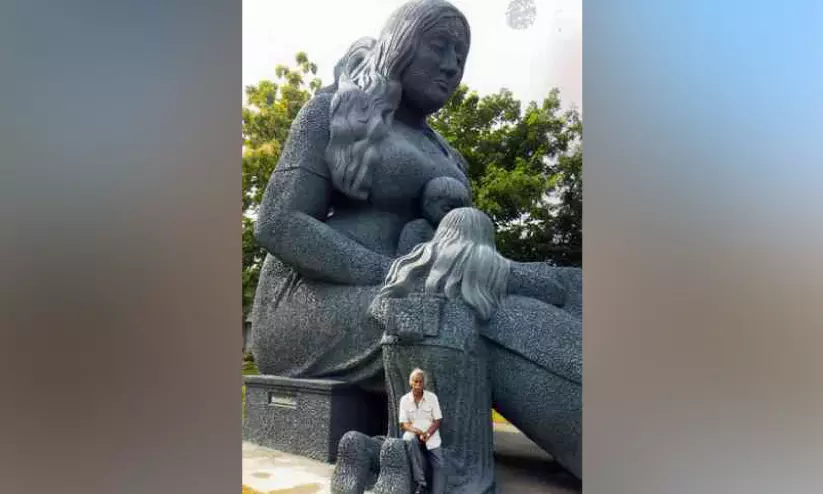 കാനായി കുഞ്ഞിരാമൻ, താൻ നിർമിച്ച ശിൽപത്തിനൊപ്പം