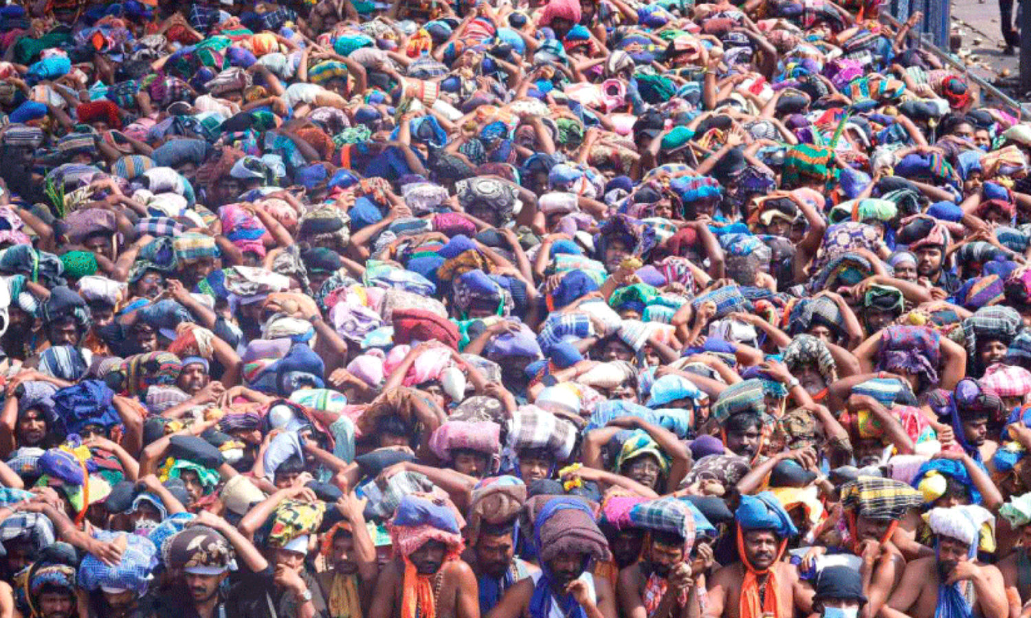 ശനിയാഴ്ച പതിനെട്ടാം പടി കയറാൻ കാത്തുനിൽക്കുന്ന തീർഥാടകർ