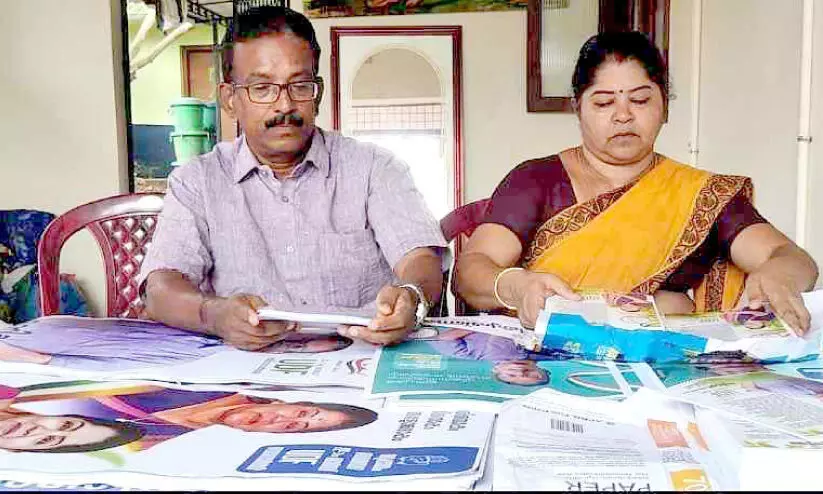 ഒറ്റപ്പാലം: മീറ്റ്ന എസ്.ആർ.കെ നഗറിലെ ‘സുപ്രഭ’ വീട്ടിൽ ഇത്തവണ തെരഞ്ഞെടുപ്പ് ചർച്ചകൾക്ക് പതിവിലും ചൂടേറെ...കഴിഞ്ഞ തെരഞ്ഞെടുപ്പിൽ മത്സരിച്ച് നിലവിൽ കൗൺസിലറായ പി. മായക്കൊപ്പം ഇത്തവണ ഭർത്താവ് കെ.കെ. ഉണ്ണികൃഷ്ണനും കന്നിയങ്കത്തിനുള്ള തയാറെടുപ്പിലാണ്. വാർഡ് വിഭജനത്തെ തുടർന്ന് പുതുതായി രൂപംകൊണ്ട വനിത വ്യവസായ കേന്ദ്രം (22) വാർഡിലാണ് ഇത്തവണ മായ മത്സരിക്കുന്നത്. തൊട്ടടുത്ത കേന്ദ്രീയ വിദ്യാലയം (23) വാർഡിലാണ് ഉണ്ണികൃഷ്ണൻ ജനവിധി തേടുന്നത്. ഇരുവരും യു.ഡി.എഫ് സ്ഥാനാർഥികളാണ്.