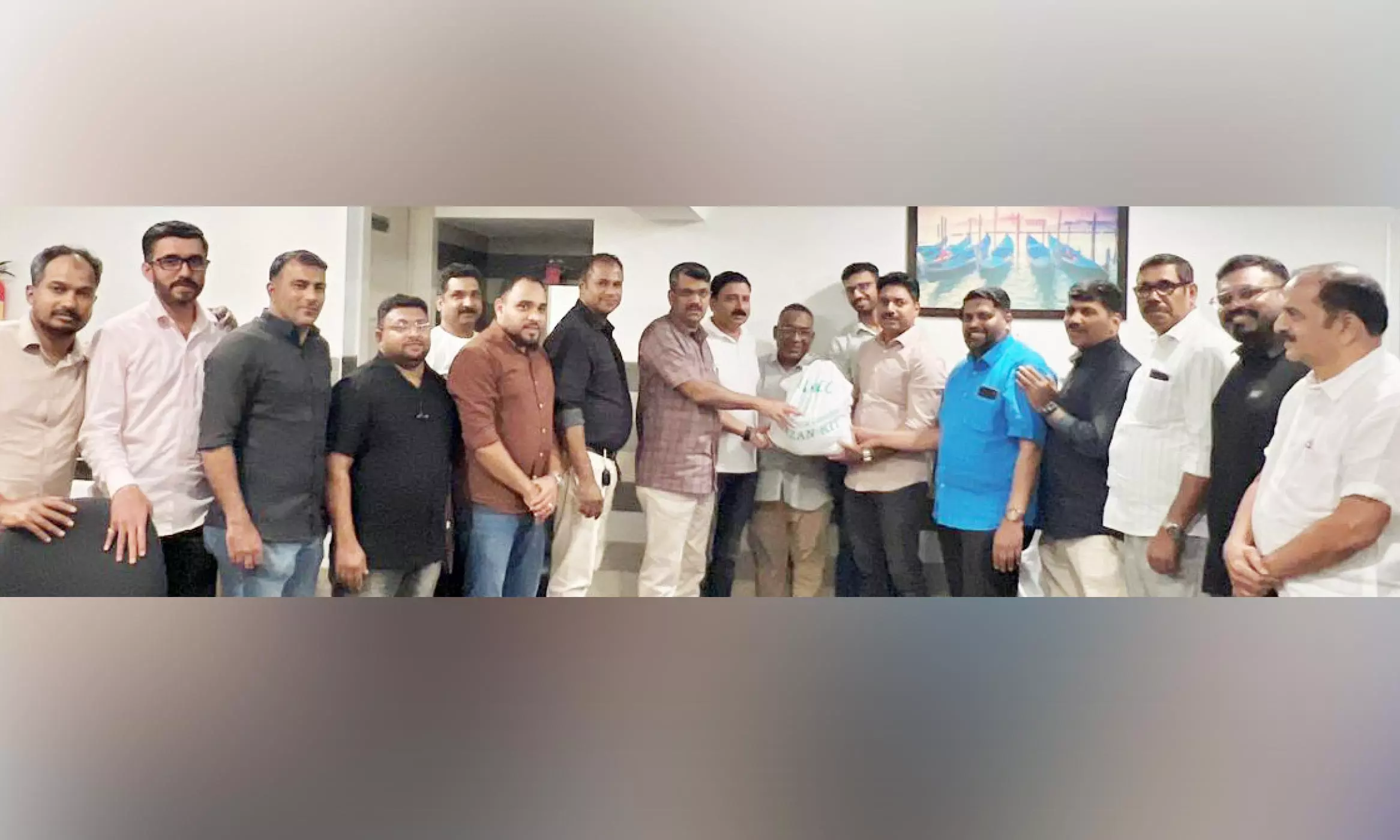 എ.ഐ.കെ.എം.സി.സി ബംഗളുരു യശ്വന്തപ്പുരം ഏരിയ റിലീഫ് കിറ്റ് വിതരണോദ്ഘാടനം പ്രസിഡന്റ് ടി. ഉസ്മാൻ ഏരിയ ഭാരവാഹികൾക്ക് നൽകി നിർവഹിക്കുന്നു