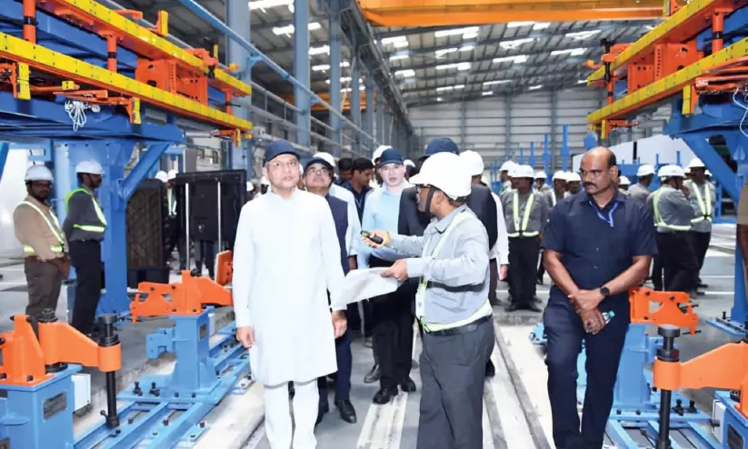 ബംഗളൂരു തിപ്പസാന്ദ്ര ബി.ഇ.എം.എൽ കാമ്പസിൽ ഉദ്ഘാടനം ചെയ്ത ആദിത്യ കോംപ്ലക്സ് കേന്ദ്ര റെയിൽവേ മന്ത്രി അശ്വിനി വൈഷ്ണവ് പരിശോധിക്കുന്നു.