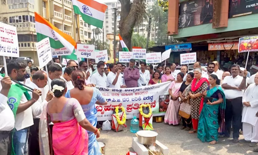 മംഗളൂരു: ഗാർഹിക, വാണിജ്യ എൽപിജി സിലിണ്ടറുകളുടെ വിലയിൽ കേന്ദ്രസർക്കാർ അടുത്തിടെ വരുത്തിയ വർധനവിനെ അപലപിച്ച് ഉഡുപ്പി ജില്ല കോൺഗ്രസ് ഓഫിസിൽനിന്ന് ബ്രഹ്മഗിരി സർക്കിളിലേക്ക് പ്രതിഷേധ മാർച്ച് നടത്തി.