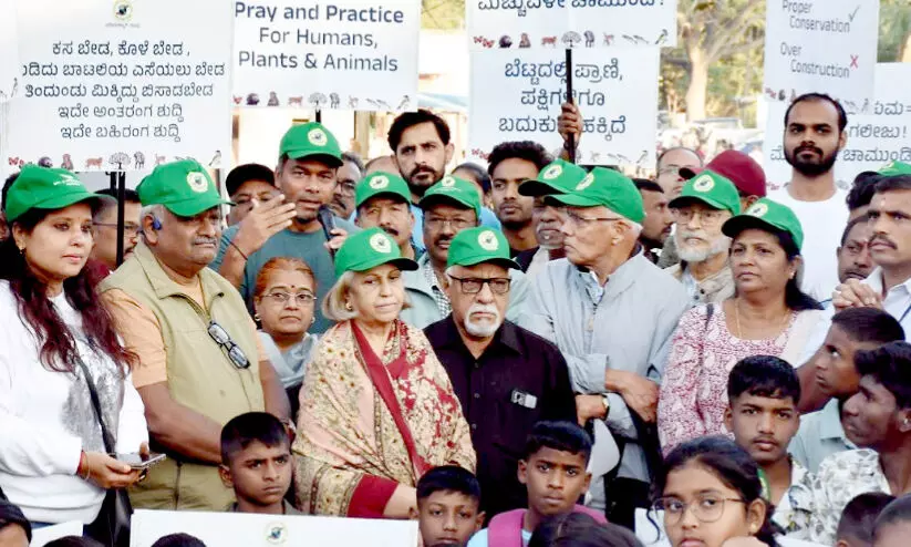 ബംഗളൂരു: ചാമുണ്ഡി ഹില്സിനെയും പരിസ്ഥിതിയെയും ദോഷകരമായി ബാധിക്കുന്ന വികസന പ്രവർത്തനങ്ങൾക്കെതിരെയുള്ള പ്രതിഷേധം ശക്തമാകുന്നു. ഫെബ്രുവരി ഒന്നിന് നൂറുകണക്കിന് ആളുകൾ മലകയറി പ്രതിഷേധ പ്രകടനം നടത്തി. കേന്ദ്ര സർക്കാറിന്റെ ‘പ്രസാദ്’ പദ്ധതിയുടെ ഭാഗമായി മലയിൽ നടക്കുന്ന നിർമാണ പ്രവർത്തനങ്ങളെ എതിർത്തുകൊണ്ട് 'പരിസരക്കാഗി നാവു' സംഘടനയുടെ നേതൃത്വത്തിലാണ് പ്രതിഷേധയാത്ര സംഘടിപ്പിച്ചത്. പരിസ്ഥിതി പ്രവർത്തകർ, സന്നദ്ധ സംഘടനകൾ, വിദ്യാര്ഥികൾ എന്നിവർ പ്രതിഷേധത്തിൽ പങ്കെടുത്തു. മൈസൂർ രാജകുടുംബാംഗം പ്രമോദ ദേവി വൊഡയാറും പ്രതിഷേധക്കാർക്ക് പിന്തുണയുമായി എത്തി.