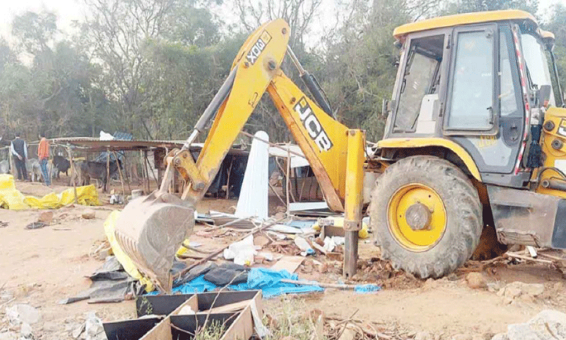 വിജയനഗറിലെ കൈയേറ്റ ഭൂമിയിലെ അനധികൃത നിർമാണം മണ്ണുമാന്തി യന്ത്രം ഉപയോഗിച്ച് നീക്കുന്നു