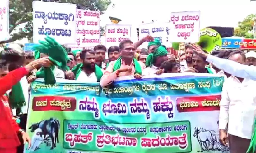 ബിഡദി ടൗൺഷിപ് പദ്ധതിക്ക് ഭൂമി ഏറ്റെടുക്കുന്നതിനെതിരെ കർഷകർ നടത്തിയ മാർച്ച്