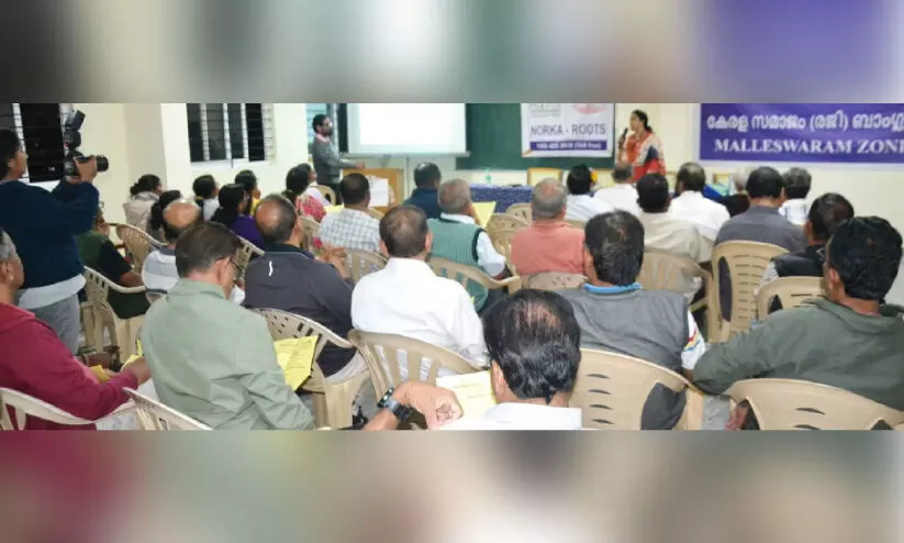 മല്ലേശ്വരം കേരള സമാജത്തിന്റെ ആഭിമുഖ്യത്തിൽ നടന്ന നോർക്ക ബോധവത്കരണ പരിപാടിയില്നിന്ന്