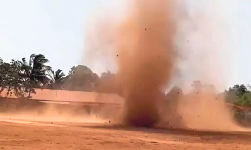 മംഗളൂരു: നഡ ഗ്രാമപഞ്ചായത്തിന് മുന്നിലെ സ്ലൈഡിങ് ഗ്രൗണ്ടിൽ വ്യാഴാഴ്ച പ്രത്യക്ഷപ്പെട്ട ചുഴലിക്കാറ്റ് പ്രദേശവാസികളിൽ പരിഭ്രാന്തി സൃഷ്ടിച്ചു. ഉച്ചക്ക് വീശിയടിച്ച ശക്തമായ ചുഴലിക്കാറ്റ് പൊടിപടലങ്ങളും മാലിന്യങ്ങളും ഭൂമിയിൽ നിന്ന് കുറച്ചുദൂരത്തേക്ക് കൊണ്ടുപോയി. കാർക്കള, മൂഡ്ബിദ്രി, മാൽപെ പ്രദേശങ്ങളിൽ സമാനമായ ചുഴലിക്കാറ്റുകൾ റിപ്പോർട്ട് ചെയ്തു.