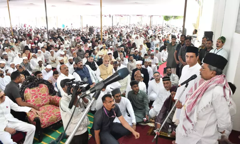 മില്ലേഴ്സ് റോഡിലെ മസ്ജിദ്-ഇ-ഖദ്രിയയിലെ ഈദ് ഗാഹില് മുഖ്യമന്ത്രി സിദ്ധരാമയ്യ സംസാരിക്കുന്നു