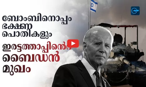 ബോംബിനൊപ്പം ​ഭക്ഷണപ്പൊതികളും; ഇരട്ടത്താപ്പിന്റെ ബൈഡൻ മുഖം