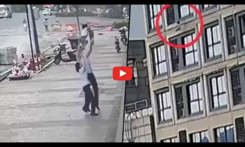 News Summary - Viral video: Toddler falls off fifth floor in China, survives as man