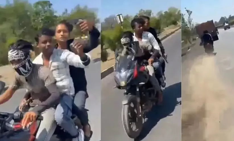 മൗഗഞ്ച്: റീൽസ് എടുക്കാനായി ദേശീയ പാതയിൽ ബൈക്കിൽ അഭ്യാസപ്രകടനം നടത്തിയ മൂന്ന് യുവാക്കൾ അപകടത്തിൽ മരിച്ചു. മധ്യപ്രദേശിലെ മൗഗഞ്ച് ജില്ലയിൽ നാഷനൽ ഹൈവേ-135ൽ കഴിഞ്ഞ ദിവസമാണ് ഈ ദുരന്തമുണ്ടായത്. അമിതവേഗതയിൽ വന്ന ബൈക്ക് നിയന്ത്രണം വിട്ട് മുന്നിൽ പോയ ട്രെയിലർ ലോറിയിലേക്ക് ഇടിച്ചുകയറുകയായിരുന്നു. മരിച്ചവർ മൂവരും സഹോദരങ്ങളാണ്.