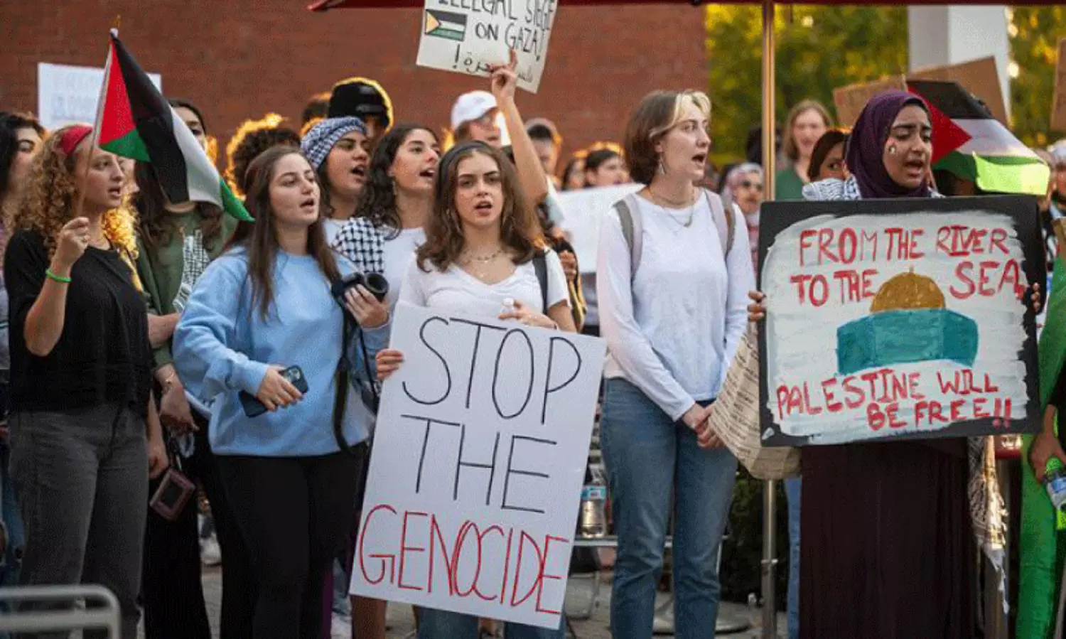 ഇസ്രായേലിന് പാശ്ചാത്യ ഭരണകൂടങ്ങൾ നൽകുന്ന സാമ്പത്തികവും സൈനികവുമായ സഹായങ്ങൾ നിർത്തുക, വംശഹത്യക്ക് എതിരെ പൊരുതുക തുടങ്ങിയ മുദ്രാവാക്യങ്ങളാണ് പ്രക്ഷോഭകാരികൾ ഉന്നയിക്കുന്നത്. ഏപ്രിൽ പതിനെട്ടിന് കൊളംബിയ യൂനിവേഴ്സിറ്റിയിൽ ടെന്റുകൾ കെട്ടി താമസിച്ചുകൊണ്ടാണ് ഈ വിദ്യാർഥികൾ പ്രക്ഷോഭത്തിന്റെ പുതുഘട്ടത്തിലേക്ക് പ്രവേശിച്ചത്.