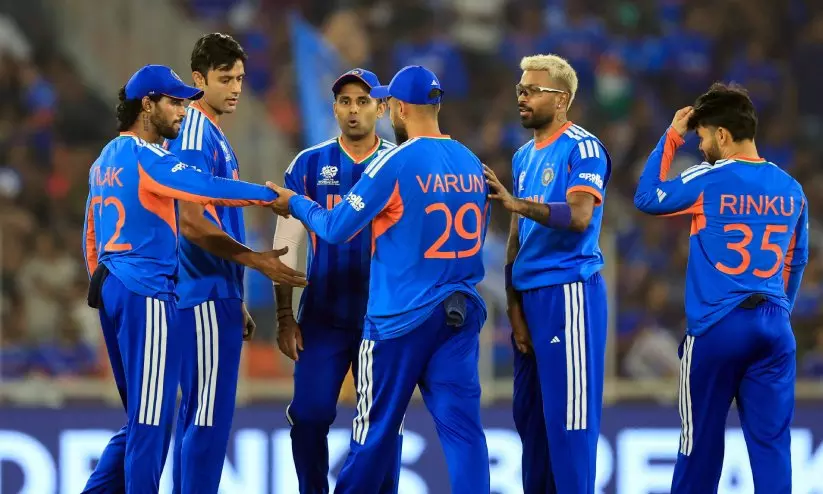 വിക്കറ്റുനേട്ടം ആഘോഷിക്കുന്ന ഇന്ത്യൻ താരങ്ങൾ