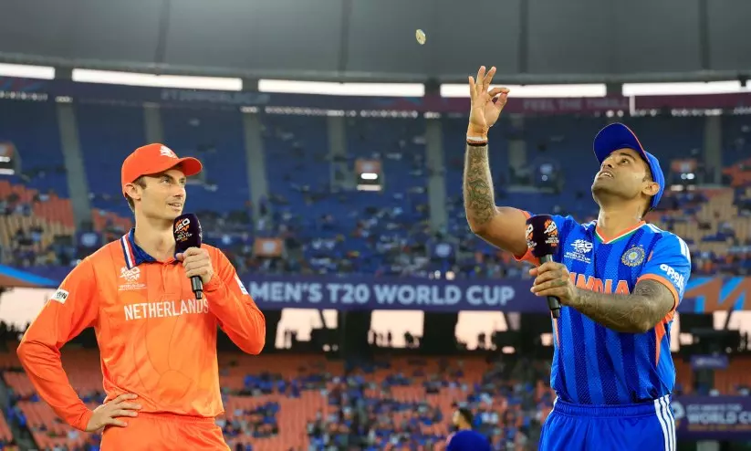 അഹ്മദാബാദ്: ട്വന്റി ലോകകപ്പിൽ തങ്ങളുടെ അവസാന ഗ്രൂപ്പ് മത്സരത്തിൽ നെതർലൻഡ്സിനെതിരെ ടോസ് നേടിയ ഇന്ത്യൻ ക്യാപ്റ്റൻ സൂര്യകുമാർ യാദവ് ബാറ്റിങ് തെരഞ്ഞെടുത്തു. മഞ്ഞിന്റെ സാന്നിധ്യം ആദ്യം ബാറ്റുചെയ്യുന്നവർക്ക് ഗുണകരമാകുമെന്ന് സൂര്യകുമാർ പറഞ്ഞു. കഴിഞ്ഞ മത്സരത്തിൽനിന്ന് രണ്ട് മാറ്റവുമായാണ് ഇന്ത്യ ഇന്നിറങ്ങുന്നത്. അക്സർ പട്ടേലിനു പകരം വാഷിങ്ടൺ സുന്ദറും കുൽദീപ് യാദവിന് പകരം അർഷിദീപ് സിങ്ങും അന്തിമ ഇലവനിലെത്തി. മലയാളി താരം സഞ്ജു സാംസണ് ഇന്ന് അവസരം നൽകിയില്ല. ടോസ് നേടിയിരുന്നെങ്കിൽ ബാറ്റിങ് തെരഞ്ഞെടുക്കുമായിരുന്നുവെന്ന് ഡച്ച് ക്യാപ്റ്റൻ സ്കോട്ട് എഡ്വാർസ് പറഞ്ഞു. ഒരു മാറ്റവുമായാണ് അവർ ഇന്നിറങ്ങുന്നത്.