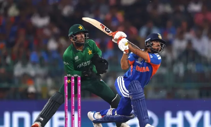 കൊളംബോ: ട്വന്റി20 ലോകകപ്പിലെ ആവേശകരമായ ഗ്രൂപ്പ് എ പോരാട്ടത്തിൽ പാകിസ്താനു മുന്നിൽ 176 റൺസിന്റെ വിജയലക്ഷ്യമുയർത്തി ഇന്ത്യ. അർധ സെഞ്ച്വറി നേടിയ ഇഷാൻ കിഷാനാണ് (77) ഇന്ത്യയുടെ ടോപ് സ്കോറർ. ക്യാപ്റ്റൻ സൂര്യകുമാർ യാദവ് ഭേദപ്പെട്ട പ്രകടനം പുറത്തെടുത്തപ്പോൾ അവസാന ഓവറുകളിൽ ശിവം ദുബെയുടെ വമ്പൻ ഷോട്ടുകൾ സ്കോർ ഉയർത്തുന്നതിൽ നിർണായകമായി. സഞ്ജു സാംസണെ ബെഞ്ചിലിരുത്തി കളത്തിലിറങ്ങിയ അഭിഷേക് ശർമ (പൂജ്യം) നിരാശപ്പെടുത്തി. പാകിസ്താനായി സയിം അയൂബ് മൂന്ന് വിക്കറ്റ് നേടി. നിശ്ചിത 20 ഓവറിൽ ഏഴ് വിക്കറ്റ് നഷ്ടത്തിലാണ് ഇന്ത്യ 175 റൺസ് നേടിയത്.