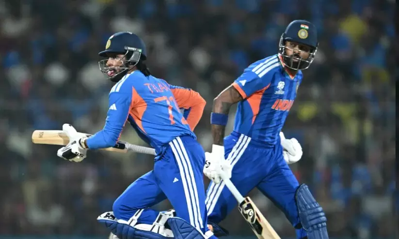 തിലക് വർമയും ഹാർദിക് പാണ്ഡ്യയും ബാറ്റിങ്ങിനിടെ