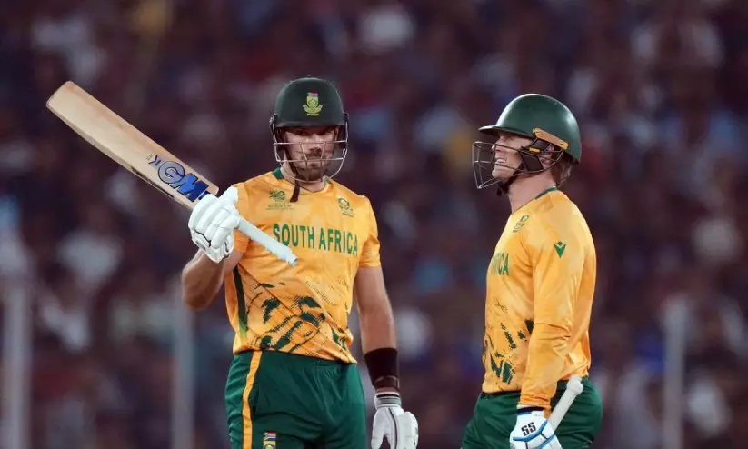 മറുപടി ബാറ്റിങ്ങിനിറങ്ങിയ ദക്ഷിണാഫ്രിക്കക്ക് ഓപണർമാരായ എയ്ഡൻ മർക്രമും ക്വിന്റൺ ഡികോക്കും ചേർന്ന് വെടിക്കെട്ട് തുടക്കമാണ് നൽകിയത്. പവർപ്ലേ ഓവറുകളിൽ ദക്ഷിണാഫ്രിക്ക 83 റൺസ് അടിച്ചെടുത്തു. 44 പന്തിൽ പുറത്താകാതെ 86 റൺസ് നേടിയ മർക്രം ടീമിനെ വിജയത്തിലേക്ക് നയിച്ചു. 19 പന്തിൽ നിന്നാണ് മർക്രം തന്റെ അർധ ശതകം പൂർത്തിയാക്കിയത്. ടി20 ലോകകപ്പിൽ ഒരു ദക്ഷിണാഫ്രിക്കൻ താരത്തിന്റെ ഏറ്റവും വേഗമേറിയ ഫിഫ്റ്റിയാണിത്. ഡേവിഡ് മില്ലർ പുറത്താകാതെ 24 റൺസ് നേടി മർക്രമിന് മികച്ച പിന്തുണ നൽകി. 18-ാം ഓവറിൽ സിക്സറിലൂടെ മില്ലറാണ് വിജയം കുറിച്ചത്.
