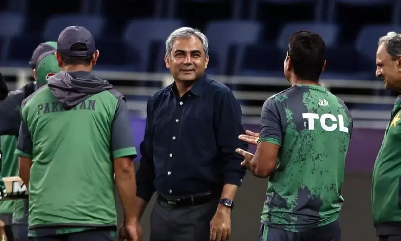 പി.സി.ബി ചെയർമാൻ മൊഹ്സിൻ നഖ്വി പാകിസ്താൻ ടീമിനൊപ്പം