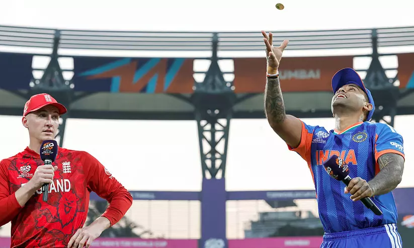 മുംബൈ: ട്വന്റി 20 ലോകകപ്പ് രണ്ടാം സെമി ഫൈനലിൽ ഇംഗ്ലണ്ടിനെതിരെ ഇന്ത്യക്ക് ബാറ്റിങ്. മുംബൈ വാങ്കഡെ സ്റ്റേഡിയത്തിൽ നടക്കുന്ന പോരാട്ടത്തിൽ ടോസ് നേടിയ ഇംഗ്ലീഷ് ക്യാപ്റ്റൻ ഹാരി ബ്രൂക്ക് ഇന്ത്യയെ ബാറ്റിങ്ങിനയക്കുകയായിരുന്നു. വെസ്റ്റിൻഡീസിനെ തകർത്ത ടീമിൽ മാറ്റങ്ങളില്ലാതെയാണ് ക്യാപ്റ്റൻ സൂര്യകുമാർ യാദവും സംഘവും നിർണായക പോരാട്ടത്തിനിറങ്ങുന്നത്. ടോസ് ലഭിച്ചിരുന്നെങ്കിൽ ആദ്യം ബാറ്റുചെയ്യാൻ തന്നെയായിരുന്നു താല്പര്യമെന്ന് സൂര്യകുമാർ യാദവ് പ്രതികരിച്ചു. സ്പിന്നർ റെഹാൻ അഹമ്മദിനു പകരം ജെയ്മി ഓവർടൻ പ്ലേയിങ് ഇലവനിലെത്തി. ആതിഥേയരെന്ന നിലയിലും കിരീട ഫേവറിറ്റുകളെന്ന നിലയിലും വലിയ സമ്മർദ്ദത്തോടെയാണ് ഇന്ത്യ ഇറങ്ങുന്നത്.