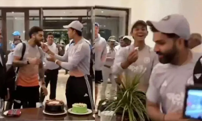പിന്നീട് ടീമിലെ തന്നെ മറ്റൊരു വെറ്ററൻ താരമായ രോഹിത് ശർമക്കാണ് താരം കേക്ക് നൽകിയത്. എന്നാൽ, താരം അത് വാങ്ങാൻ കൂട്ടാക്കിയില്ല. ‘ഞാൻ വീണ്ടും തടിവെക്കും’ എന്ന് പറഞ്ഞ് രോഹിത് വേഗം മുറിയിലേക്ക് പോയി. ഇത് കേട്ട് ചുറ്റും കൂടി നിന്നവർ ചിരിക്കുന്നതും വിഡിയോയിൽ കാണാം. ഫിറ്റ്നസിന്റെ പേരിൽ രോഹിത് വലിയ വിമർശനം നേരിട്ടിരുന്നു. ടെസ്റ്റിൽനിന്ന് വിരമിച്ചതിനു പിന്നാലെ കർശന ഡയറ്റിലൂടെയും പരിശീലനത്തിലൂടെയും പത്തു കിലോയാണ് താരം കുറച്ചത്. ചാപ്യൻസ് ട്രോഫി വിജയിച്ച ശേഷമുള്ള അവധി കഴിഞ്ഞാണ് രോഹിത് ഫിറ്റ്നസ് മെച്ചപ്പെടുത്താനുള്ള പരിശീലനം തുടങ്ങിയത്.