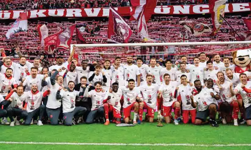 മ്യൂണിക് : ജർമനിയിലെ ചുവന്ന വസന്തം തുടരും. ബുണ്ടസ് ലിഗ സിംഹാസനത്തിലെ ചക്രവർത്തിമാരായി വീണ്ടും അവരോധിക്കപ്പെട്ട് ബയേൺ മ്യൂണിക്. നാല് മത്സരങ്ങൾ ബാക്കി നിൽക്കെ 35ാം ബുണ്ടസ് ലിഗ കിരീടം സ്വന്തമാക്കി വിൻസന്റ് കൊമ്പനിയും സംഘവും. സ്റ്റുട്ട്ഗാർട്ടിനെതിരായ ആവേശകരമായ മത്സരത്തിൽ 4-2ന് ജയിച്ചാണ് കുതിപ്പ് തുടർന്നത്. 14 വർഷത്തിനിടെ 13ാം തവണയാണ് ബയേണിന് കിരീട നേട്ടം. 2023-24ൽ ബയേൺ ലെവർകുസെൻ ചാമ്പ്യന്മാരാവുന്നതിന് മുമ്പും ശേഷവും ജർമനിയിൽ മറ്റൊരു പേരില്ല. ഇംഗ്ലണ്ട് സ്ട്രൈക്കർ ഹാരി കെയ്നിനിത് തുടർച്ചയായ രണ്ടാം ബുണ്ടസ് ലിഗ ടൈറ്റിലാണ്.