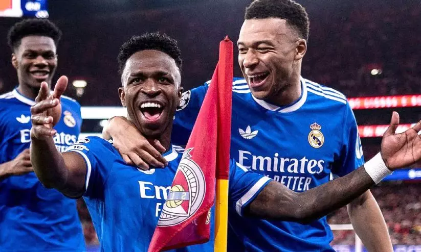 ലണ്ടൻ: ചാമ്പ്യൻസ് ലീഗ് പ്ലേഓഫിൽ കളിയുണർന്നപ്പോൾ ജയത്തോടെ പി.എസ്.ജിയും റയൽ മഡ്രിഡും. എതിർ താരത്തിനെതിരെ റയൽ താരം വിനീഷ്യസ് ജൂനിയർ വംശീയാധിക്ഷേപ പരാതി ഉന്നയിച്ച കളിയിൽ ഏകപക്ഷീയമായ ഒറ്റ ഗോളിനാണ് റയൽ ബെൻഫിക്കയെ വീഴ്ത്തിയത്. രണ്ടു ഗോളിന് പിറകിൽ നിന്ന ശേഷം മൂന്നെണ്ണം തിരിച്ചടിച്ച് പി.എസ്.ജി മാനം കാത്തപ്പോൾ തുർക്കിയ ടീം ഗലത്സരായ് രണ്ടിനെതിരെ അഞ്ചു ഗോളടിച്ച് ഇറ്റാലിയൻ അതികായരായ യുവന്റസിനെ മടക്കി. ബൊറൂസിയ ഡോർട്മുണ്ട് എതിരില്ലാത്ത രണ്ട് ഗോളിന് അറ്റ്ലാന്റയെയും തോൽപിച്ചു.