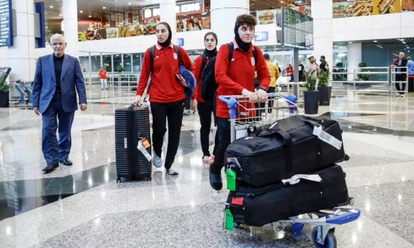 ഇറാൻ വനിത ദേശീയ ഫുട്ബാൾ ടീം അംഗങ്ങൾ ക്വാലാലംപുർ വിമാനത്താവളത്തിൽ