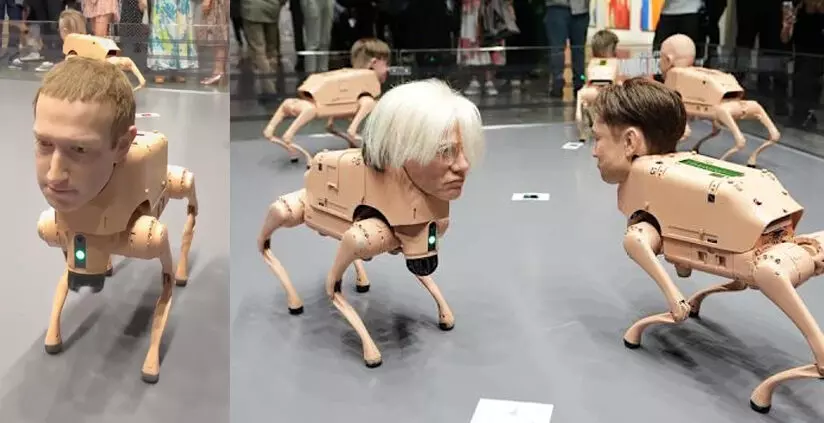 േഫ്ലാറിഡ: ടെക് കോടീശ്വരന്മാരുടെയും പ്രശസ്ത കലാകാരന്മാരുടെയും ഹൈപ്പർ റിയലിസ്റ്റിക് സിലിക്കോൺ മുഖങ്ങളുമായി ഒരു കൂട്ടം ‘നാൽക്കാലി റോബോട്ടുകൾ’ തറയിൽ ചുറ്റിത്തിരിയുന്നു.