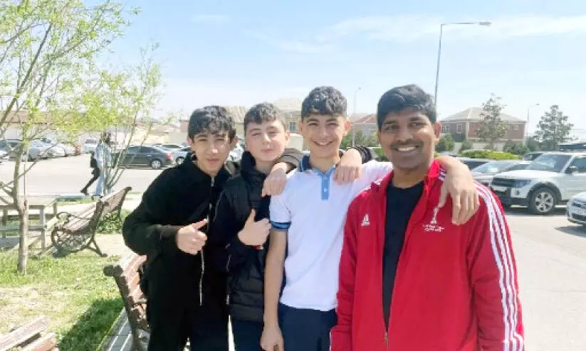 അവർക്ക് എന്തെങ്കിലും എന്നോട് ചോദിക്കണമെന്നുണ്ട്. ഒരുപക്ഷേ, ചിലപ്പോൾ ഖത്തർ വേൾഡ് കപ്പിൽ വളന്റിയറായപ്പോൾ കിട്ടിയ ആരും ശ്രദ്ധിക്കുന്ന ജാക്കറ്റാണ് ഞാനിട്ടിരിക്കുന്നത്. ഏഴാം ക്ലാസിൽ പഠിക്കുന്ന കുട്ടികളാണ്. ഇംഗ്ലീഷ് അത്ര വശമില്ലാത്തതിനാലാണ് അവർ നിന്ന് പരുങ്ങുന്നത്. അവസാനം അറിയാവുന്ന രീതിയിൽ എവിടുന്നാ എന്ന് ചോദിച്ചു, ഹിന്ദുസ്ഥാൻ എന്ന് പറഞ്ഞപ്പോ അവർക്ക് സന്തോഷം. എന്റെ കൂടെയുള്ളത് ഒരു പാകിസ്താൻ കശ്മീരി ആണ്, പേര് ഡാനിഷ്. ബാകുവിൽ നിന്ന് പരിചയപ്പെട്ടതാണ്,