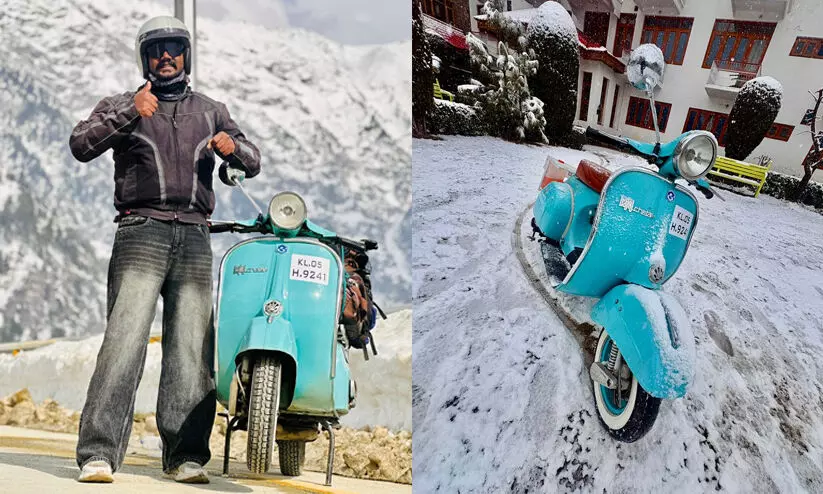 ഒരുമാസം മുമ്പാണ് ഇടുക്കി അണക്കെട്ടിന് മുന്നിൽനിന്ന് അൻസിൽ തന്റെ ചേതക് സ്കൂട്ടറുമായി യാത്രക്കിറങ്ങിയത്. 3800 കി.മീറ്റർ പിന്നിട്ട് കശ്മീരിലെത്തിയപ്പോൾ അവിടെനിന്ന് നേപ്പാളിലേക്ക് യാത്രക്കൊരുങ്ങുകയാണ് ഈ 21 കാരൻ. ഇടുക്കിയിൽ ബൈക്ക് വർക്ക്ഷോപ് നടത്തുന്ന മണിയാറൻകുടി സ്കൂൾ സിറ്റി മാടോലിൽ വീട്ടിൽ അൻസിൽ നവാസിന്റെ ഏറെനാളായുള്ള ആഗ്രഹമാണ് തന്റെ 1999 മോഡൽ ചേതക് സ്കൂട്ടറിലൊരു കശ്മീർയാത്ര.