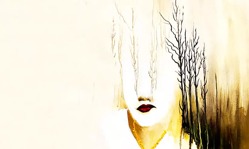 ആഴ്ന്നുള്ള നോട്ടങ്ങളിലെല്ലാം ഭയത്തിന്റെ അഗാധ സാഗരങ്ങളവൾ കണ്ടു.