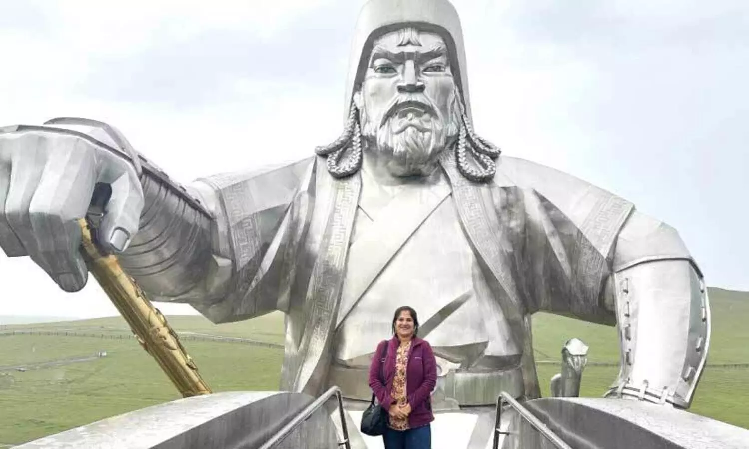 ചെങ്കിസിനുവേണ്ടി പണിത ഏറ്റവും വലിയ സ്മാരകം ഉലാന് ബാത്തറിൽനിന്ന് 60 കിലോമീറ്റര് മാറിയാണ്. അരദിവസത്തെ സന്ദര്ശനത്തിനായി ഒരു ഗ്രൂപ് ടൂറിനൊപ്പം ബുക്ക് ചെയ്തു. ഷാങ്റിലാ എന്ന ഹോട്ടലില്നിന്നായിരുന്നു ടൂര് ആരംഭിക്കുക. താമസിക്കുന്ന ഹോസ്റ്റലില്നിന്ന് രണ്ടു കിലോമീറ്റര് അകലെയായിരുന്നു അത്. രാവിലെ ഏഴു മണിക്ക് ഇറങ്ങി നടന്നു. ചെറിയ മഴ ചാറ്റലുണ്ടായിരുന്നു. മഴക്കോട്ടിടാന് മടി തോന്നിയതുകൊണ്ട്, മഴയും നനഞ്ഞു നടന്നു. എത്തേണ്ടതിനു അരമണിക്കൂര് മുമ്പ് ഹോട്ടലിലെത്തി. മുന്തിയ ഹോട്ടലിന്റെ ലോബിയിലെ അടിപൊളി സോഫയില് ഇരിപ്പുറപ്പിച്ചു. കൃത്യം എട്ടു മണിക്ക് ഒരു ചെറുപ്പക്കാരന് എന്റെ അടുത്ത് വന്ന് മിത്രയല്ലേ എന്ന് ചോദിച്ചു. എന്റെ അന്നത്തെ ഗൈഡ് ആയ നമ്സറായ് ആയിരുന്നു. എന്റെ തൊട്ടടുത്ത കസേരയില് വന്നിരുന്നു. ആദ്യത്തെ ചോദ്യം, ‘‘എനിക്കെന്തു പ്രായം കാണും?’’