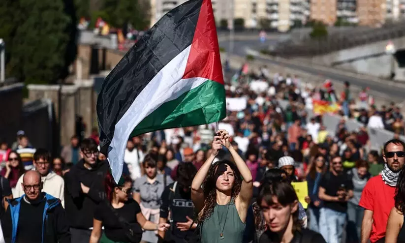 ഫലസ്തീൻ, സുഡാൻ, വെനിസ്വേല എന്നിവിടങ്ങളിലെ അടിച്ചമർത്തലുകളിൽ പ്രതിഷേധിച്ച് പാരീസിൽ നൂറുകണക്കിന് ആളുകൾ തെരുവിൽ അണിനിരന്നു. അവർ ഫലസ്തീൻ, വെനിസ്വേലൻ പതാകകൾ വീശി. ‘ഇസ്രായേലിനെ ബഹിഷ്കരിക്കുക’ തുടങ്ങിയ ബാനറുകൾ പിടിച്ചു.
