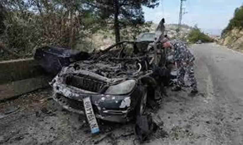 ആക്രമണത്തിൽ തകർന്ന ജേണലിസ്റ്റുകൾ സഞ്ചരിച്ച വാഹനം