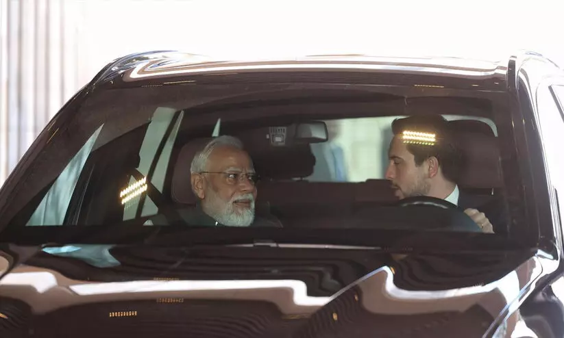അമ്മാൻ: ജോർഡൻ സന്ദർശനത്തിനെത്തിയ പ്രധാനമന്ത്രി നരേന്ദ്ര മോദി പ്രശസ്തമായ ജോർഡൻ മ്യൂസിയം സന്ദർശിച്ചപ്പോൾ വാഹനം ഓടിച്ചത് കിരീടാവകാശി അൽ ഹുസൈൻ അബ്ദുല്ല രണ്ടാമൻ. ഇരു രാജ്യങ്ങളും തമ്മിലെ ഊഷ്മള ബന്ധം പ്രതിഫലിപ്പിക്കുന്നതായി കിരീടാവകാശിയുടെ പ്രവൃത്തി.