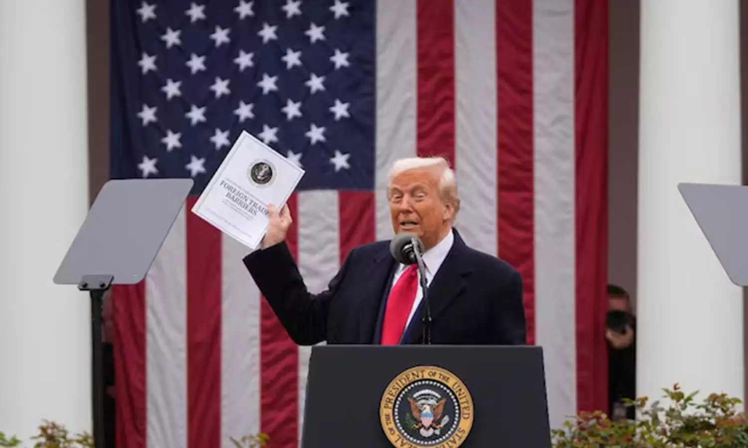 വിവിധ രാജ്യങ്ങൾക്കുമേൽ ചുമത്തുന്ന തീരുവയുടെ ലിസ്റ്റുമായാണ് ഡോണൾഡ് ട്രംപ് വാർത്താസമ്മേളത്തിന് എത്തിയത്. വിവിധ രാജ്യങ്ങൾ യു.എസിന് ചുമത്തുന്ന തീരുവക്ക് അതേ രീതിയിൽ മറുപടി നൽകിയിട്ടില്ലെന്ന് ട്രംപ് അവകാശപ്പെട്ടു. ഇന്ത്യ 52 ശതമാനം തീരുവയാണ് യു.എസിന് ചുമത്തുന്നത്. എന്നാൽ, അതിന്റെ പകുതി മാത്രമേ യു.എസ് ചുമത്തുന്നുള്ളുവെന്നാണ് ട്രംപിന്റെ അവകാശവാദം.